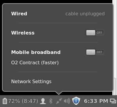 /*Network monitor for system tray*//*(c) Copyright Barry Kauler 2010, bkhome.org*//*GPL license: /usr/share/doc/legal/gpl-2.0.txt*//*first release, version 2.0, may 18, 2010*//*version 2.1: new icons*//*version 2.3: icons now external, now displays dead icon correctly*//*version 2.3.2: still trying to get icon to update correctly*//*version 2.4: display tx/rx in KB if <1024, improved mouse-click operations*//*version 2.4.1: fix icon update when disconnect/reconnect*//*version 2.4.2: display acc monthly tx/rx*//*version 2.4.3: change 'long int' to 'long long int' -- 32-bit to 64-bit*//*2.5 (20120519): rodin.s: added gettext*//*2.9 (20140125): 01micko: added domain*//*2.9.1 (20150407) : peebee/rerwin: set Update function exit status expected by g_timeout_add; replace deprecated gtk calls*//*2016-20-16: Misalf: Increased update interval ; TinyCore compat. - Removed monthly tx/rx & Changed net tools ; Changed icons & some text.*/#include <string.h>#include <libintl.h>#include <locale.h>#include <stdio.h>#include <stdlib.h>#include <unistd.h>#include <sys/types.h>#include <sys/stat.h>#include <fcntl.h>#include <gtk/gtk.h>#include <gdk/gdk.h>#include <gdk/gdkkeysyms.h>#include <glib/gstdio.h>#include <dirent.h>#include <errno.h>#define _(STRING) gettext(STRING)GdkPixbuf *networkblank_pixbuf;GdkPixbuf *networkboth_pixbuf;GdkPixbuf *networkdead_pixbuf;GdkPixbuf *networkin_pixbuf;GdkPixbuf *networkout_pixbuf;GtkStatusIcon *tray_icon;unsigned int interval = 1500; /*update interval in milliseconds*/char *netdir = "/sys/class/net";DIR *dip;struct dirent *dit;//int i = 0;char buf1[1024];FILE *fp;char char1;int flagactive = 0;int flagactiveprev = 0;char infomsg[256];char rxstr[52];long long int rxacc = 0;char rxaccstr[64];char txstr[52];long long int txacc = 0;char txaccstr[64];long long int rxaccprev = 0;long long int txaccprev = 0;int flagtransfer = 0;int flagtransferprev = 0;int loopcnt = 0;int breakcnt = 0;int flagdisconnect = 0;//100814//char *rxmonthfile = "/var/local/sns/rx_bytes_month";//char *txmonthfile = "/var/local/sns/tx_bytes_month";//char rxstrmonth[52];//long long int rxaccmonth = 0;//char txstrmonth[52];//long long int txaccmonth = 0;//long long int rxaccmonth_updated = 0;//long long int txaccmonth_updated = 0;char ipa[20];char dname[30]; //big enough?GError *gerror;gboolean Update(gpointer ptr);int find_active();int find_active() { //ip address fp = (FILE *)popen("/sbin/ifconfig|grep -iE 'Bcast|P-t-P'|tr -s ' '|tr ' ' ':'|cut -d ':' -f4" , "r"); fgets(ipa,sizeof ipa,fp); pclose(fp); if (ipa == NULL) return 1; //domain name fp = (FILE *)popen("grep -iE 'domain' /etc/resolv.conf" , "r"); fgets(dname,sizeof dname,fp); pclose(fp); if (dname == NULL) return 1; flagactive = 0; infomsg[0] = 0; strcat(infomsg,_("Interfaces: ")); dip=opendir(netdir); if (dip==NULL) return 1; while ((dit = readdir(dip)) != NULL) { //i++; if (strcmp(dit->d_name,".")!=0 && strcmp(dit->d_name,"..")!=0 && strcmp(dit->d_name,"lo")!=0 ) { buf1[0]=0; strcat(buf1,netdir); strcat(buf1,"/"); strcat(buf1,dit->d_name); strcat(buf1,"/dormant"); fp=fopen(buf1,"r"); if (fp!=NULL) { char1=fgetc(fp); fclose(fp); //if interface active, char1==0... if (char1=='0') { flagactive=flagactive+1; strcat(infomsg,dit->d_name); strcat(infomsg," "); //accumulate bytes received... buf1[0]=0; strcat(buf1,netdir); strcat(buf1,"/"); strcat(buf1,dit->d_name); strcat(buf1,"/statistics/rx_bytes"); fp=fopen(buf1,"r"); if (fp!=NULL) { fgets(rxstr,12,fp); rxacc=atol(rxstr)/1024; fclose(fp); } //rxaccmonth_updated=(rxaccmonth+rxacc)/1024; //100814 in MB //accumulate bytes transmitted... buf1[0]=0; strcat(buf1,netdir); strcat(buf1,"/"); strcat(buf1,dit->d_name); strcat(buf1,"/statistics/tx_bytes"); fp=fopen(buf1,"r"); if (fp!=NULL) { fgets(txstr,12,fp); txacc=atol(txstr)/1024; fclose(fp); } //txaccmonth_updated=(txaccmonth+txacc)/1024; //100814 in MB } } } } closedir(dip); if (flagactive==0) { strcat(infomsg,_("None")); strcat(infomsg,_("\nLeft-Click starts net_connect.sh")); strcat(infomsg,_("\nRight-Click for network setup")); } else { if (rxacc < 1024) { sprintf(rxaccstr,"%.1f",((float)rxacc)); strcat(infomsg,"\nRx: "); strcat(infomsg,rxaccstr); strcat(infomsg,_("KB ")); } else { sprintf(rxaccstr,"%.1f",((float)rxacc/1024.0)); strcat(infomsg,"\nRx: "); strcat(infomsg,rxaccstr); strcat(infomsg,_("MB ")); } //100814 monthly acc... //sprintf(rxaccstr,_("(Month:%dMB) "),rxaccmonth_updated); //strcat(infomsg,rxaccstr); if (txacc < 1024) { sprintf(txaccstr,"%.1f",((float)txacc)); strcat(infomsg,"\nTx: "); strcat(infomsg,txaccstr); strcat(infomsg,"KB "); } else { sprintf(txaccstr,"%.1f",((float)txacc/1024.0)); strcat(infomsg,"\nTx: "); strcat(infomsg,txaccstr); strcat(infomsg,_("MB ")); } //100814 monthly acc... //sprintf(txaccstr,_("(Month:%dMB) "),txaccmonth_updated); //strcat(infomsg,txaccstr); if (ipa != NULL) { strcat(infomsg,_("\nIP: ")); strcat(infomsg,ipa); } if (dname != NULL) { strcat(infomsg,dname); } } }gboolean Update(gpointer ptr) { find_active(); loopcnt=loopcnt+1; if (flagactive==0) flagtransfer=0; else { flagtransfer=1; if (rxacc!=rxaccprev) flagtransfer=2; if (txacc!=txaccprev) flagtransfer=3; if (txacc!=txaccprev && rxacc!=rxaccprev) flagtransfer=4; } //printf("loopcnt=%i flagtransfer=%i flagactive=%i\n",loopcnt,flagtransfer,flagactive); fflush(stdout); //TEST //lot of trouble with this logic, so introduce breakcnt to force icon update if stuck... if (flagtransferprev == flagtransfer) { if (loopcnt != 1) { //want to update icon on first loop. if (flagactive == flagactiveprev && flagtransfer == flagtransferprev && flagtransfer == 1) breakcnt=breakcnt+1; //no change. if (flagactive == flagactiveprev && flagtransfer == flagtransferprev && flagactive == 0) breakcnt=breakcnt+1; //no change. } else breakcnt=0; if (breakcnt != 0 && breakcnt < 8) return; //force update after 4 seconds. } breakcnt=0; flagactiveprev=flagactive; txaccprev=txacc; rxaccprev=rxacc; flagtransferprev=flagtransfer; if (flagtransfer==0) gtk_status_icon_set_from_pixbuf(t