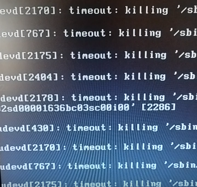 udevd timeout: killing /sbin/modprobe as per right image